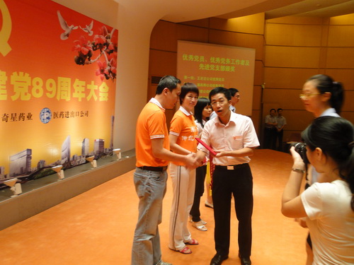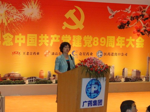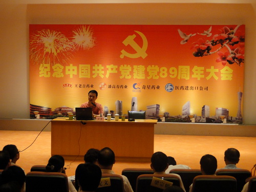625下午,潘高壽、王老吉、奇星、醫藥進出口公司四家企業黨組織的全體黨員,在廣州藝術博物院二樓多功能報告廳,聯合舉辦了“紀念中國共產黨建黨89周年黨員大會”。廣藥集團紀委書記、廣州藥業黨委書記楊秀微,廣藥集團副總經理、王老吉公司黨委書記兼董事長、奇星藥業董事長施少斌等上級領導出席了大會。大會由我司黨委書記鄭楠主持。